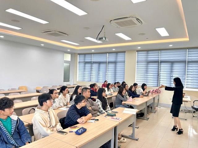 Buổi học tạo cơ hội để sinh viên trao đổi, đặt câu hỏi và thảo luận bằng tiếng Anh, qua đó nâng cao tư duy phản biện và kỹ năng hội nhập toàn cầu.