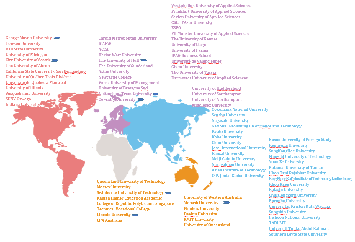 Đặc biệt, thông qua các thỏa thuận HTQT, Nhà trường đã triển khai thành công nhiều chương trình liên kết đào tạo đại học, đồng phối hợp tổ chức các hội thảo quốc tế thường niên với các trường đại học có uy tín và xếp hạng cao của quốc tế như Đại học New South Wales (Úc, xếp hạng thứ 19 trong danh mục QS-World University Ranking), Đại học Monash (Úc, xếp hạng thứ 36 trong danh mục QS-World University Ranking), Đại học Illinois (Hoa Kỳ, xếp hạng thứ 82 QS-World University Ranking), Đại học Công nghệ Queensland (Úc, top 200 QS-World University Ranking), Đại học Massey (New Zealand, top 200-300 QS-World University Ranking). Nhà trường cũng đang có 8 trường đối tác (3 trường Châu Âu, 2 trường Hoa Kỳ và 3 trường Châu Úc) đã có ký kết để công nhận kết quả học tập của sinh viên và được chuyển tiếp học tập tại trường đối tác theo với các hình thức 2+2, 3+1. Ngoài ra, Nhà trường đã hợp tác với Đại học Coventry (Anh Quốc), Đại học City University of Seattle (Mỹ) để triển khai thành công các chương trình liên kết đào tạo mở ra cơ hội cho sinh viên tiếp cận môi trường học tập quốc tế ngay từ những ngày đầu bước chân vào đại học.