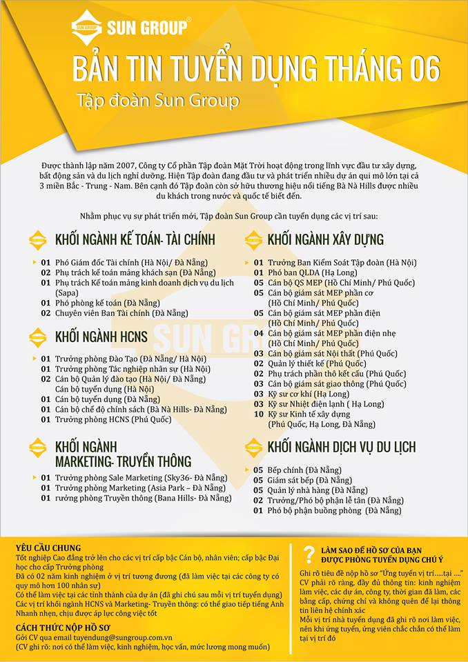 TUYỂN DỤNG SUN GROUP