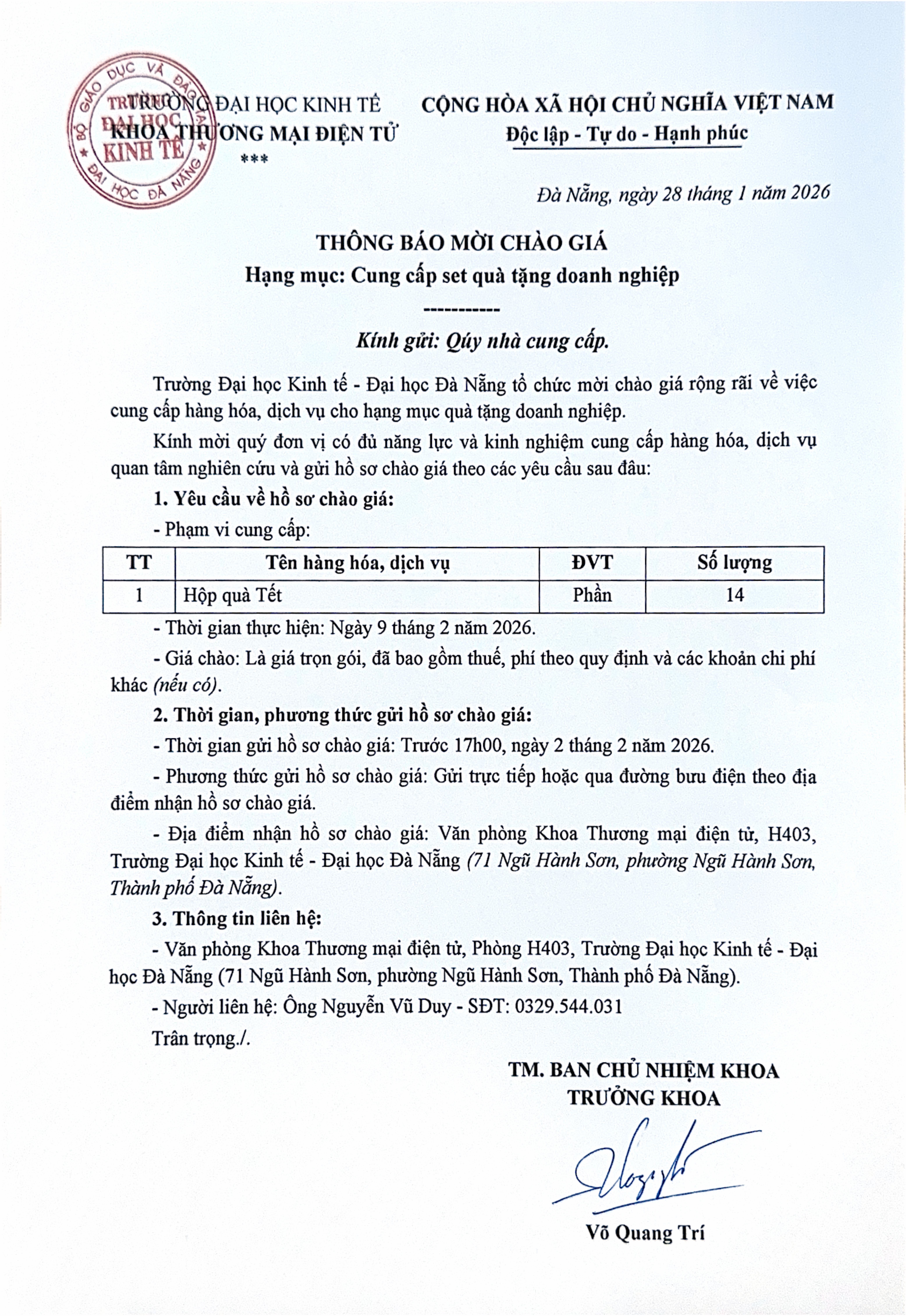Thông báo mời chào giá set quà tặng doanh nghiệp