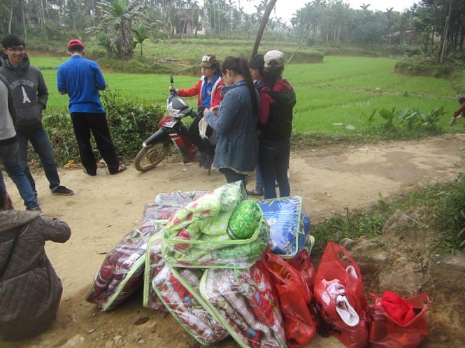 Tập trung là lúc 5h30 nhưng đến 7h30 xe mới bắt đầu di chuyển, việc cho TNV tổ chức vận chuyển đồ lên xe có vẻ tốn quá thời gian cần thiết.
