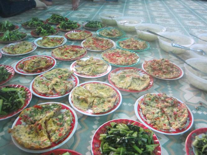 Sau khi nghỉ trưa, cả đoàn bắt tay vào công việc. Mỗi đội đi một ngã, dân vận bắt đầu đi đến nhà dân, chủ lực dọn vệ sinh trường học............, hậu cần ở nhà nấu cơm. Chọn việc ở nhà cùng hậu cần nấu ăn, lần đầu tiên mới thấm cái vất vả của đội quân đặc biệt này. Tất cả thức ăn đều nấu bằng bếp củi, vì vậy, từ 2h đến 5h chiều chỉ khói và khói. Bếp củi các bạn nấu chưa quen, chiên trứng bị cháy đến cả mấy cái mới được thành phẩm, 02 nồi cơm phải vật lộn mới ra lò được, còn những món khác khá suôn sẻ.