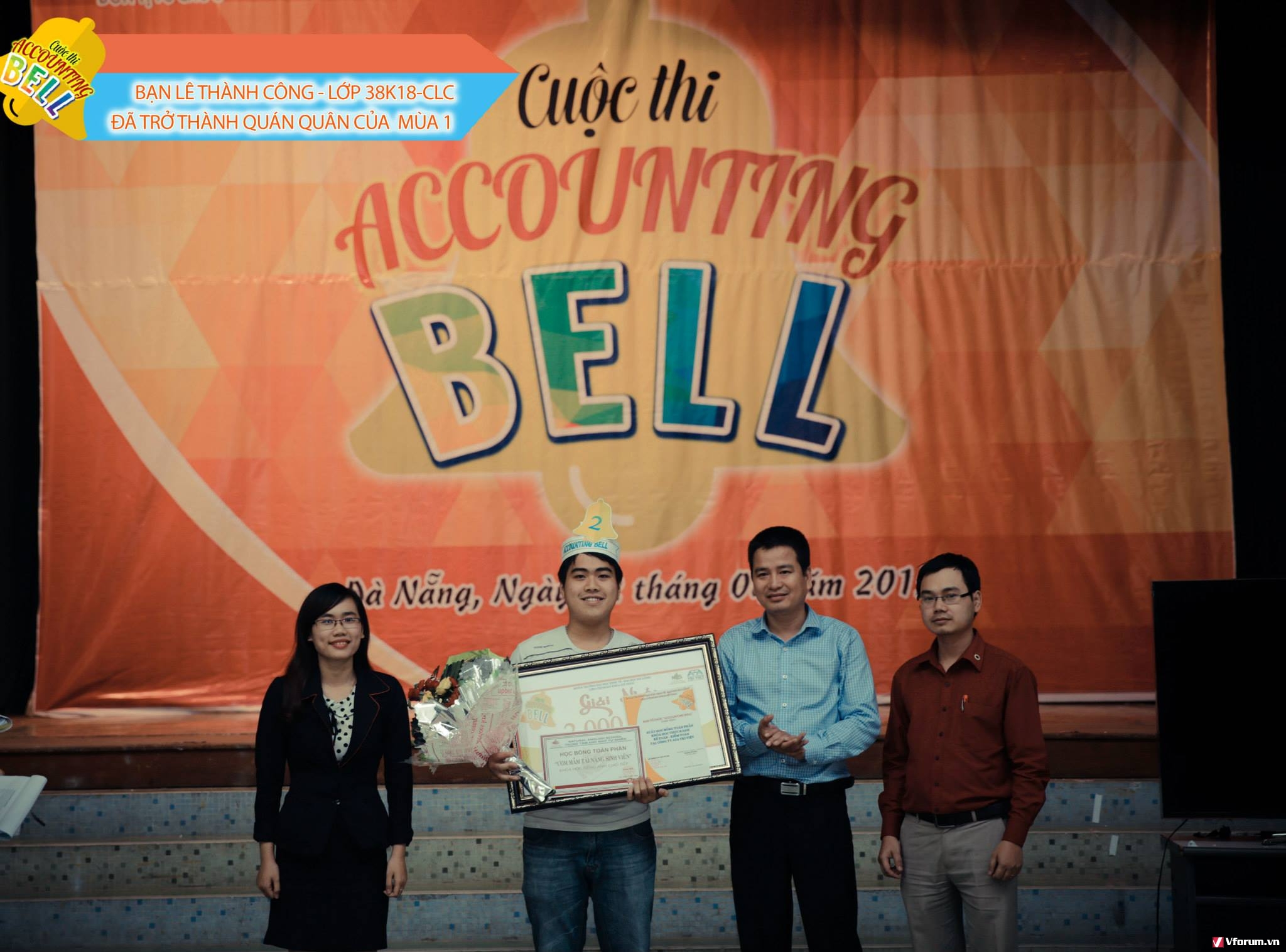 Trải qua nhiều câu hỏi hóc búa về cả kiến thức chuyên ngành, kiến thức xã hội, tiếng Anh, câu hỏi IQ,... các thí sinh và các cổ động viên trong đêm chung kết đã cho chúng ta thấy được tài năng của sinh viên Kinh tế là không có giới hạn. Vượt qua được những câu hỏi hóc búa, bạn Lê Thành Công lớp 38K18-CLC đã xuất sắc trở thành quán quân của ACCOUNTING BELL 2015.