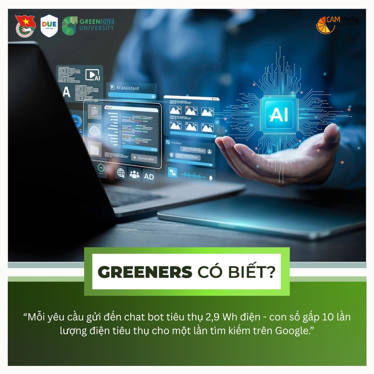 Điều đáng chú ý là một câu lệnh riêng lẻ có thể mang lai ảnh hưởng rất nhỏ, nhưng hàng trăm triệu câu hỏi mỗi ngày lại trở thành một thách thức đối với môi trường. Tuy nhiên, đối với sự thuận tiện của trí tuệ nhân tạo cũng như các ứng dụng công nghệ khác, điều quan trọng không phải là từ bỏ, mà là sử dụng có ý thức. Đối với các Greeners, chúng mình có thể bắt đầu việc sống xanh đối với AI bằng việc tự hỏi: “Liệu có cần thiết để gửi câu lệnh này”. Vì vậy, trong thời đại chuyển đổi số, hãy không ngừng sáng tạo cùng công nghệ, chỉ cần nhớ rằng ngay cả những cuộc trò chuyện “ảo” cũng để lại dấu vết thật ngoài đời, “đồng xanh” nhé.