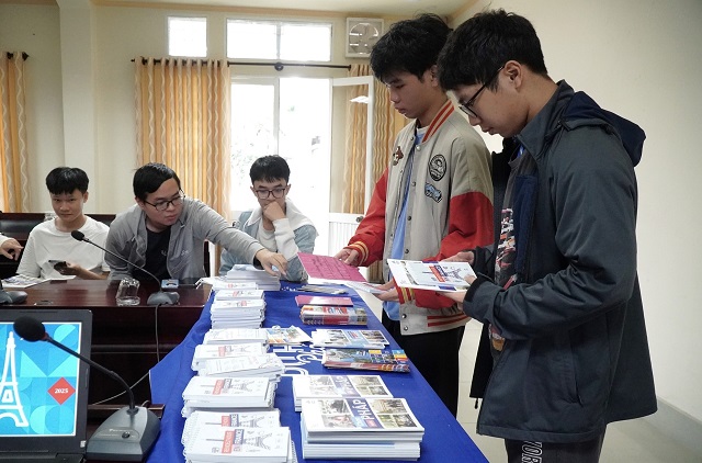 Sinh viên Trường Đại học Bách khoa (Đại học Đà Nẵng) tìm hiểu thông tin du học Pháp. Ảnh: SONG KHUÊ