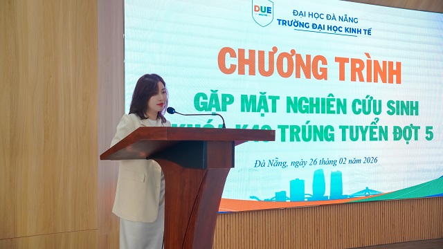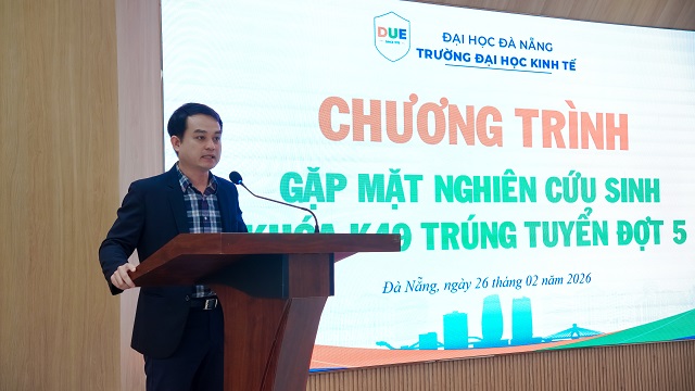 Sáng 26/02/2026, Trường Đại học Kinh tế - Đại học Đà Nẵng đã tổ chức Gặp mặt chào mừng 05 Nghiên cứu sinh khóa K49 trúng tuyển đợt 5 năm 2025, thuộc các ngành: Kinh tế phát triển, Quản trị kinh doanh và Tài chính - Ngân hàng. Chương trình đồng thời phổ biến các quy định quan trọng liên quan đến công tác quản lý và đào tạo trình độ tiến sĩ.
