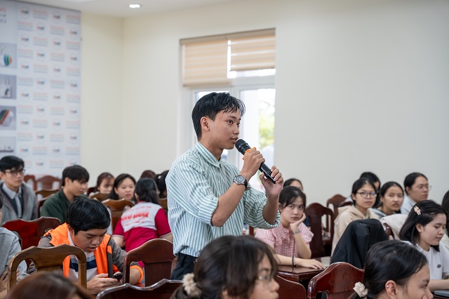 Sinh viên trao đổi cùng diễn giả tại buổi chuyên đề học thuật