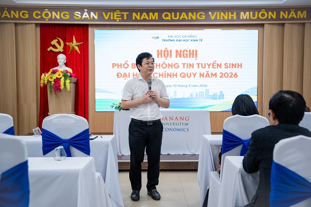 Ngày 10/3/2026, Trường Đại học Kinh tế đã tổ chức Hội nghị Phổ biến thông tin tuyển sinh đại học chính quy năm 2026 với sự tham dự của Ban Giám hiệu, lãnh đạo các Khoa, Phòng, Trung tâm cùng các Trưởng bộ môn và cán bộ phụ trách tư vấn tuyển sinh toàn trường.