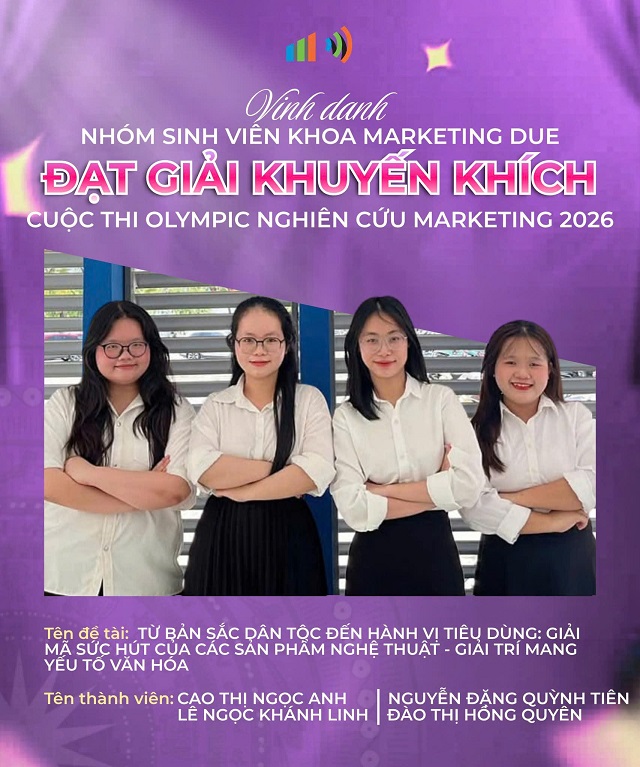 Chúc mừng sinh viên DUE đạt giải cao tại Cuộc thi Olympic Nghiên cứu Marketing 2026