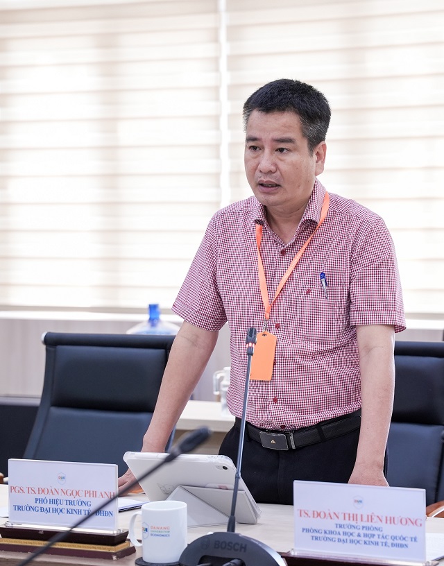 Tại buổi làm việc, TS. Bùi Huỳnh Nguyên - Phó trưởng Phòng Khoa học và Hợp tác quốc tế trình bày Báo cáo kết quả thực hiện Công tác tiếp nhận và quản lý lưu học sinh nước ngoài tại Trường Đại học Kinh tế giai đoạn năm học 2023 - 2024 đến 2025 - 2026. Theo đó, Trường đã từng bước hoàn thiện hệ thống tiếp nhận và quản lý lưu học sinh nước ngoài, ghi nhận sự gia tăng rõ rệt về quy mô người học quốc tế, đồng thời đặt mục tiêu mở rộng mạnh mẽ đến năm 2030.