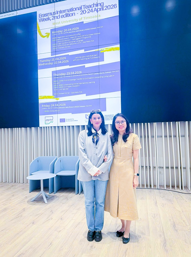 Từ ngày 20/4 - 24/4/2026, TS. Nguyễn Quang Minh Nhi, giảng viên Khoa Tài chính, Trường Trường Đại học Kinh tế đã tham gia Tuần lễ giảng dạy quốc tế Erasmus lần thứ 2 (Erasmus International Teaching Week - 2nd Edition) tại West University of Timisoara, Rumani.